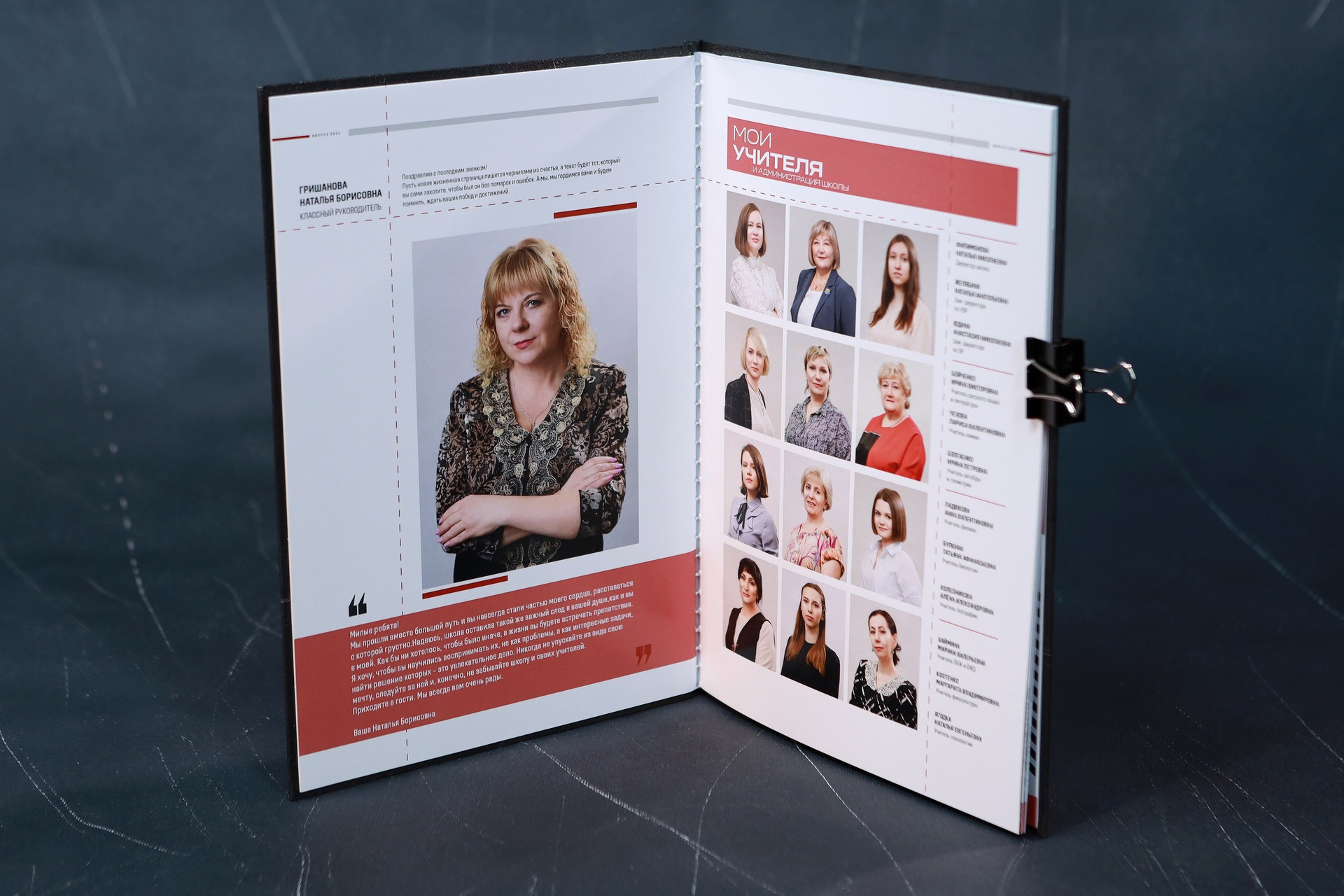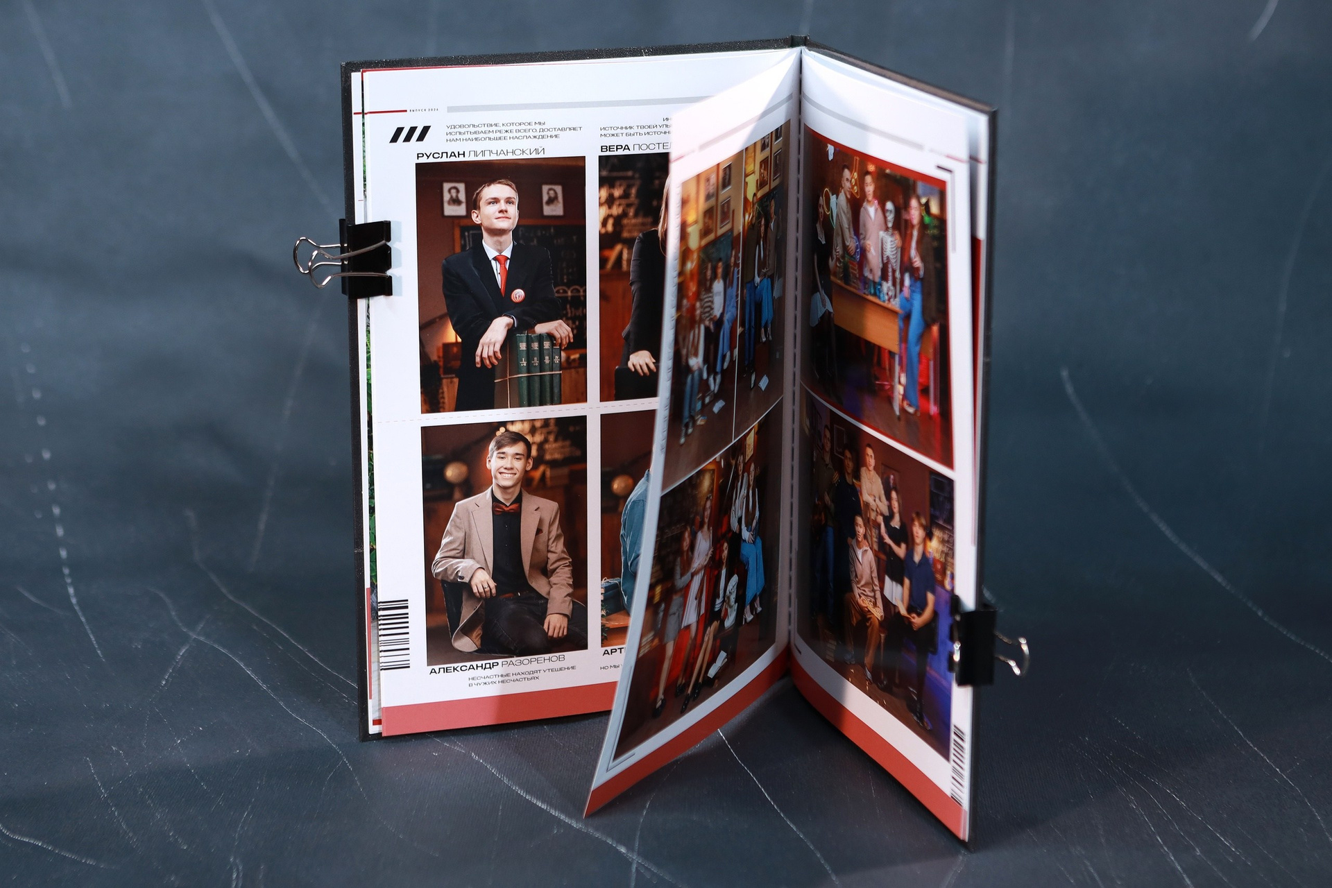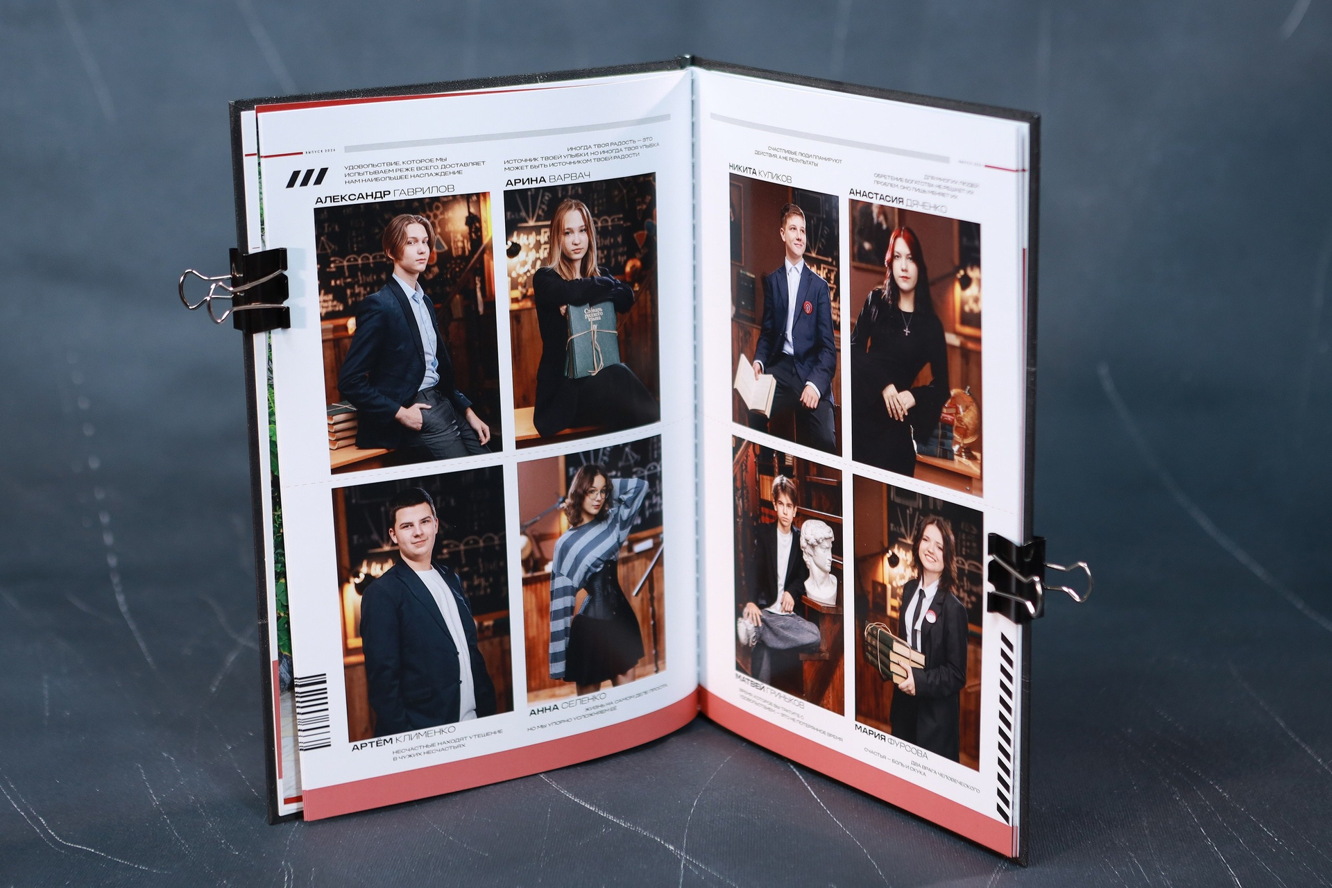 Три персонализации: Персонализация на лицевой части альбома, персональная цитата, персональная жизненная цель под мини-фото хозяина альбома. Напутственные слова классного руководителя. Плотные журнальные страницы. Портретная и коллажная съёмка проводятся либо в школе, либо в студии (на выбор). В альбом включены групповые фото в том месте, где проводится портретная съёмка. Включена выездная съёмка.